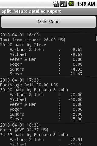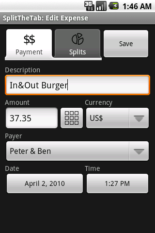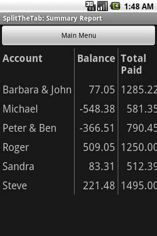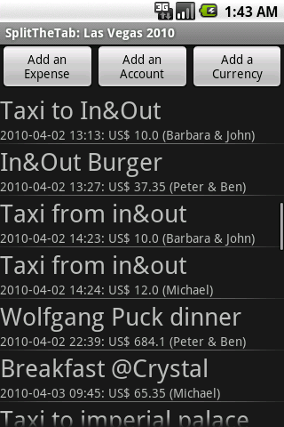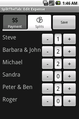 SplitTheTab makes it easy to capture every expense and to keep a running total of the balance.